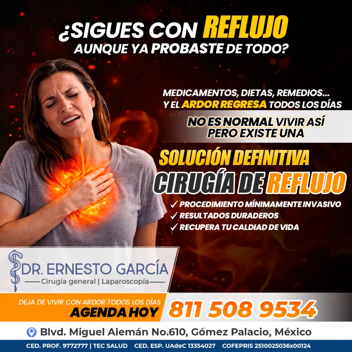 El manejo del reflujo gastroesofágico por cirugía laparoscópica es una opción efectiva para pacientes con síntomas persistentes que no mejoran con tratamiento médico. A través de pequeñas incisiones, se refuerza la válvula entre el esófago y el estómago para evitar el paso del ácido gástrico.